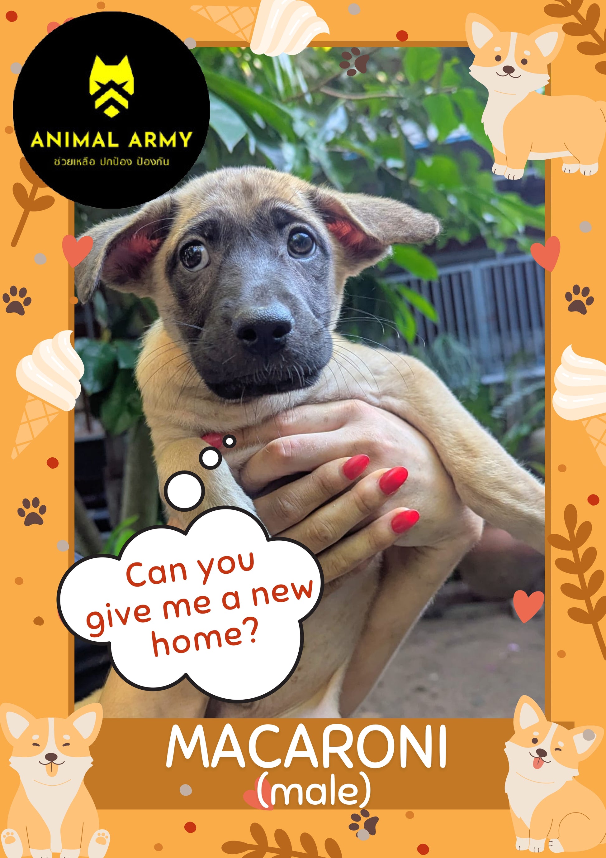 Macaroni เป็นการผสมผสานที่ลงตัวระหว่างความมั่นใจและความรัก ด้วยนิสัยที่เป็นอิสระ เจ้าลูกสุนัขตัวน้อยนี้ชอบออกสำรวจด้วยตัวเองและทำสิ่งต่าง ๆ ในแบบของเขา — แต่อย่าเพิ่งเข้าใจผิด!