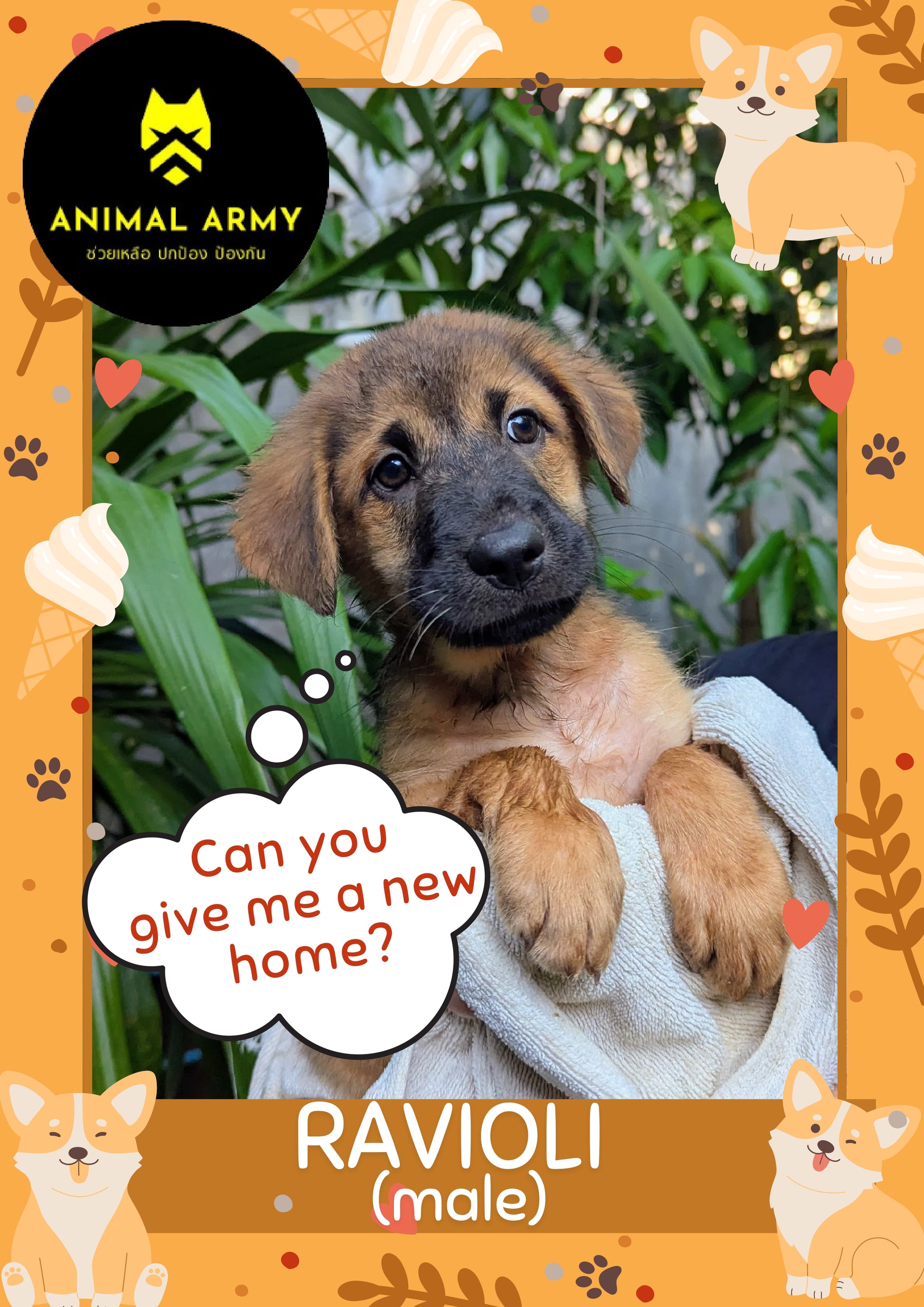 Ravioli คือสุนัขที่เราเรียกกันอย่างเอ็นดูว่า “นักชิม” — เขาเป็นเจ้าตัวเล็กที่รักการกินเสมอ! มักจะเป็นคนแรกที่ไปถึงชามอาหาร และเป็นคนสุดท้ายที่จากไป